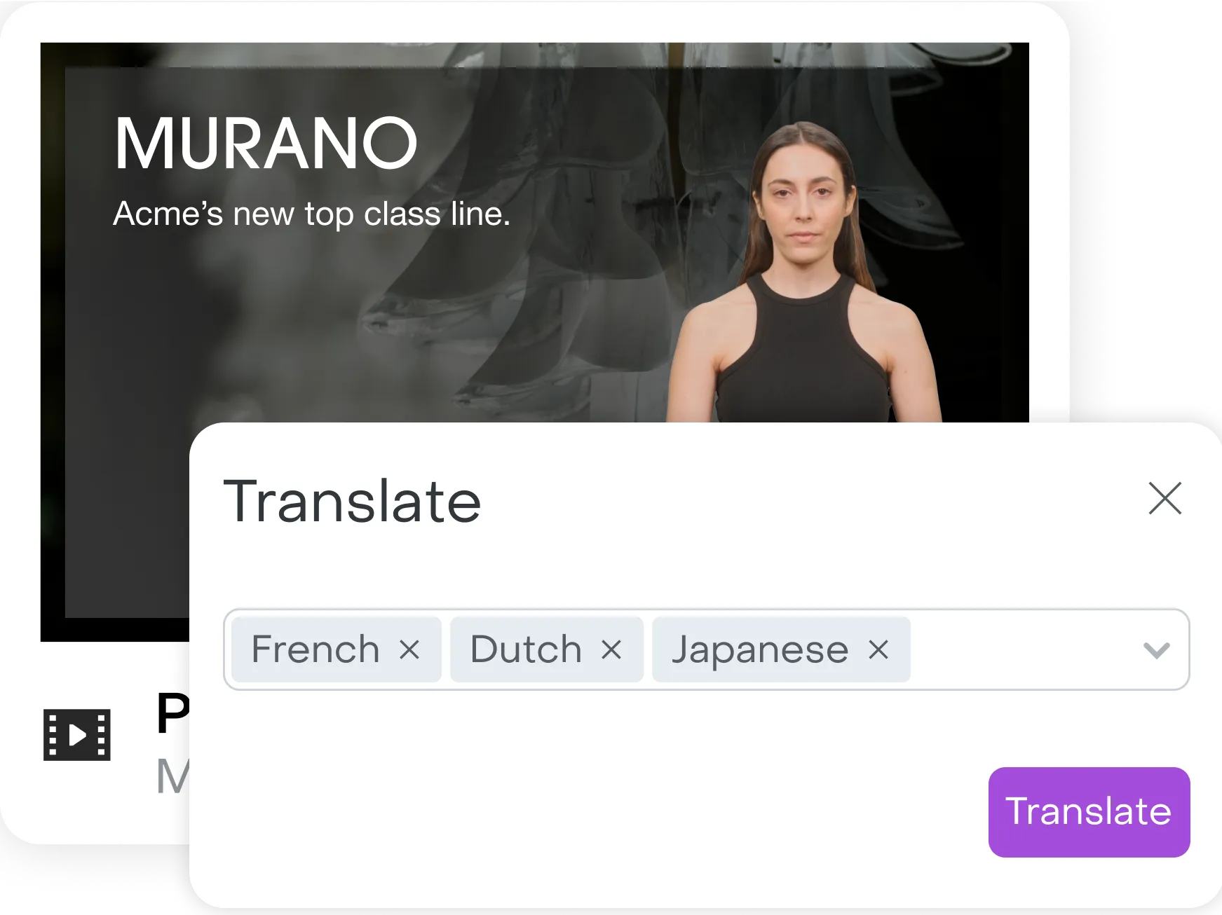 Training an international team? Drop in any video you have and we'll switch it to any language you want, with voices and lips perfectly synced.